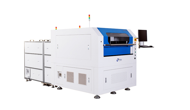 The series spans a range of configurations, from cost-effective entry-level platforms to high-throughput systems capable of exceeding 15,000 apertures per hour — with optional small-aperture acceleration modules pushing speeds to 30,000–80,000 apertures per hour for features in the 30–100 μm range. At the high end of the range, an integrated inline configuration combines laser cutting, marking, polishing, and automated stencil inspection into a single continuous production line, eliminating all post-processing steps and allowing finished stencils to go directly into production.